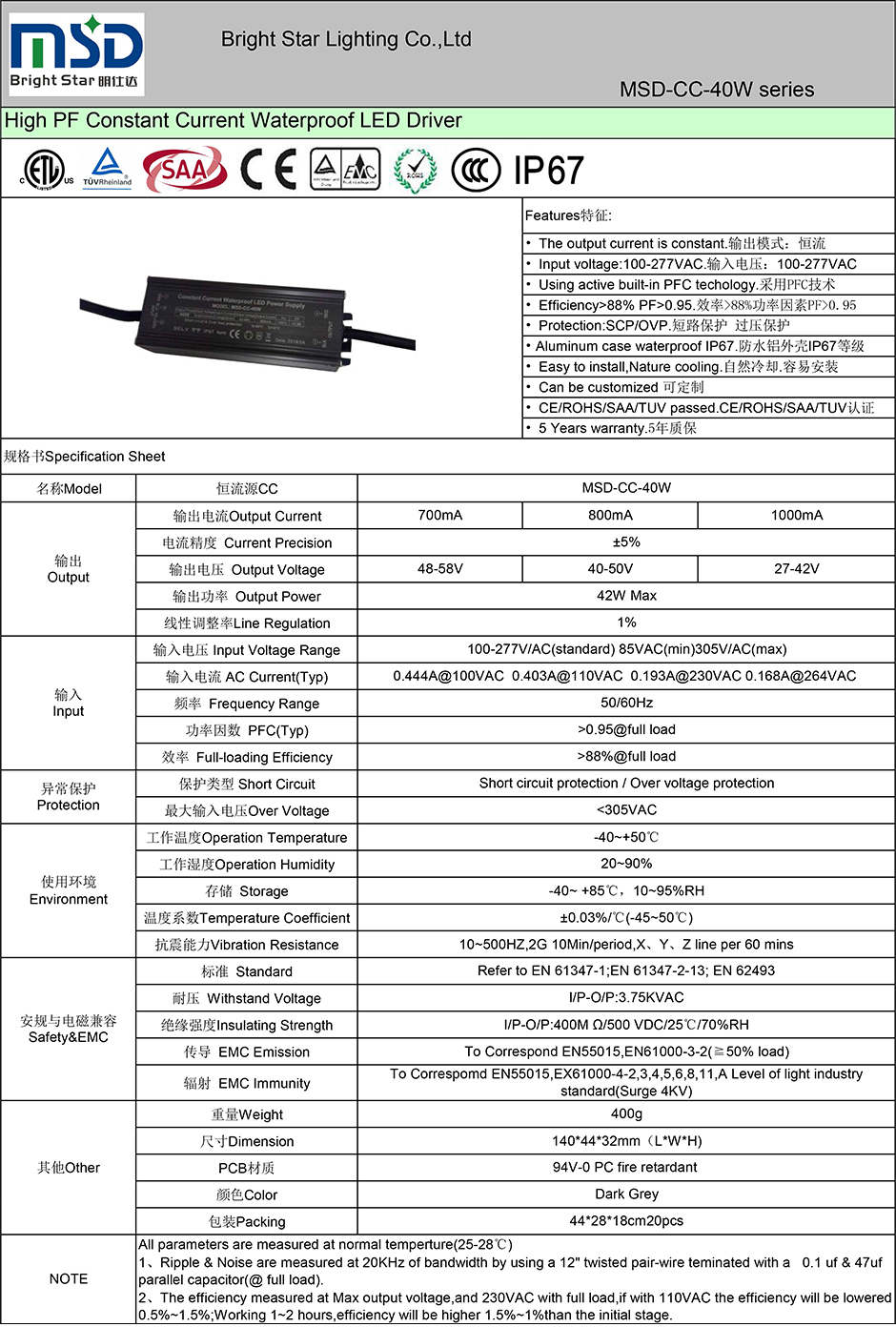 ● Output mold: Constant current(CC);● Waterproof aluminum case IP67 protection;
