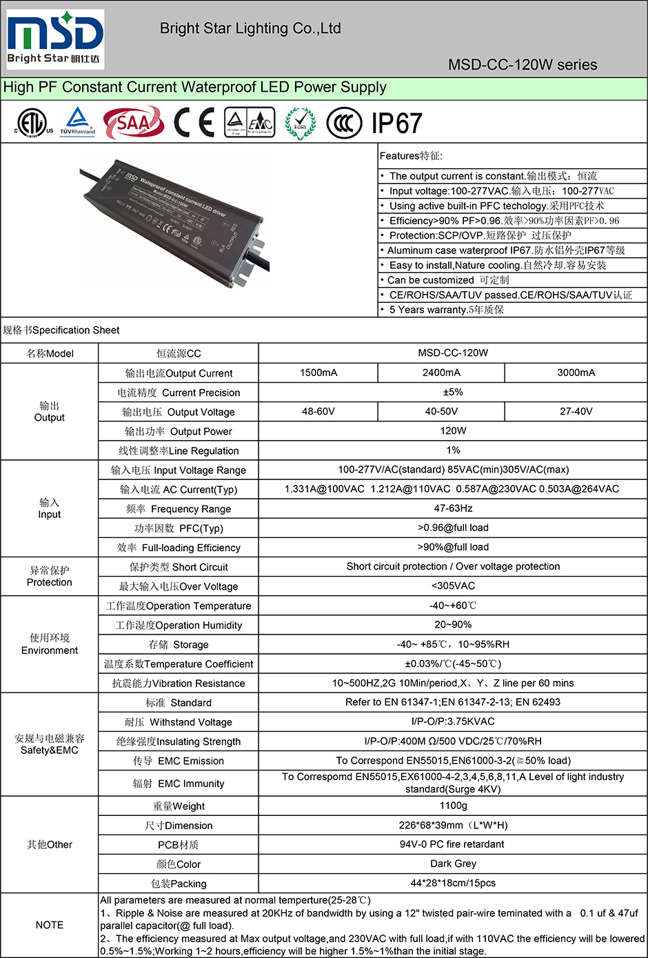 ● CE/ROHS/SAA/TUV/ETL/CCC certificate;