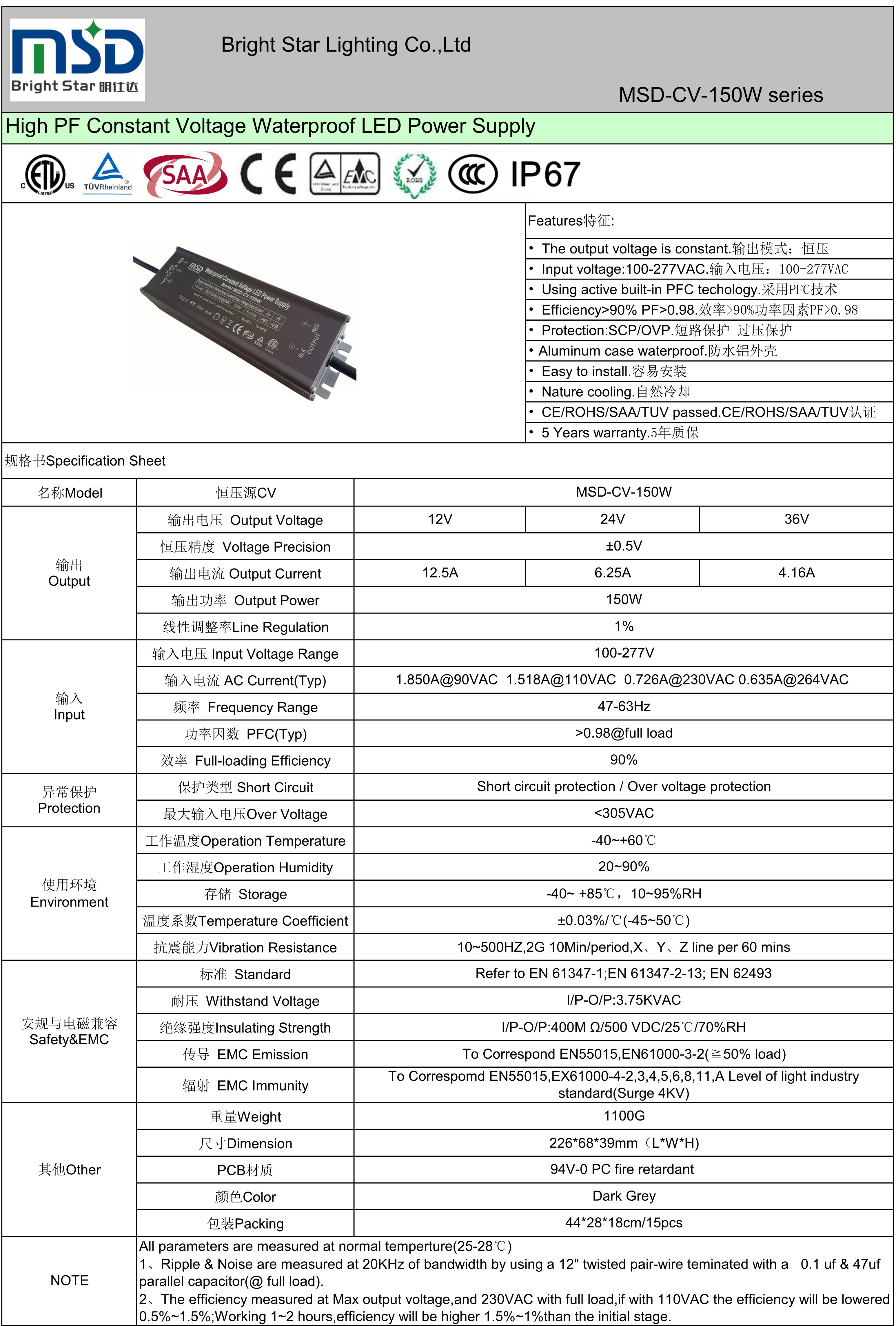 ● Output mode: constant voltage(CV);● Waterproof aluminum case IP67 protection;