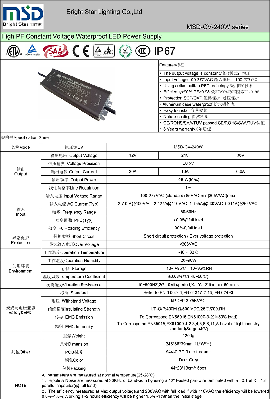 ●      CE/ROHS/SAA/TUV/ETL/CCC certificate;