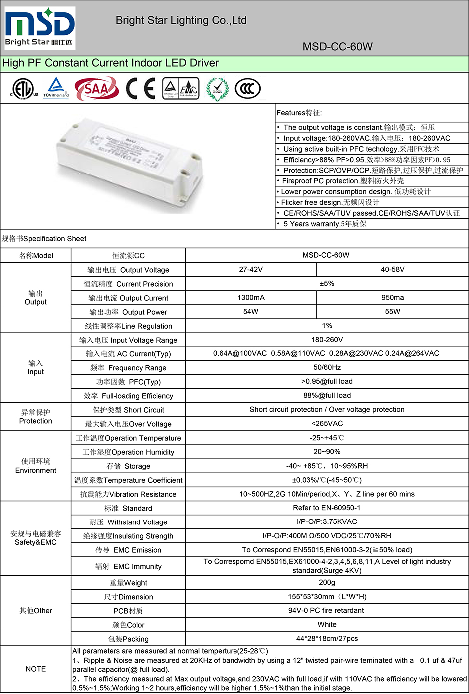 ● CE/ROHS/SAA/TUV/ETL/CCC certificate;