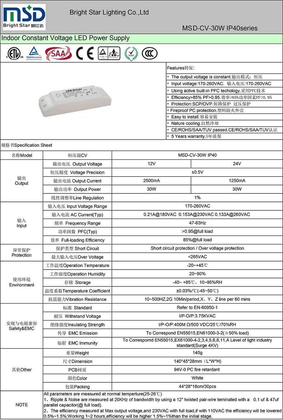 ● Output mold: Constant voltage(CV);● Fireproof plastic case IP20 Protection;