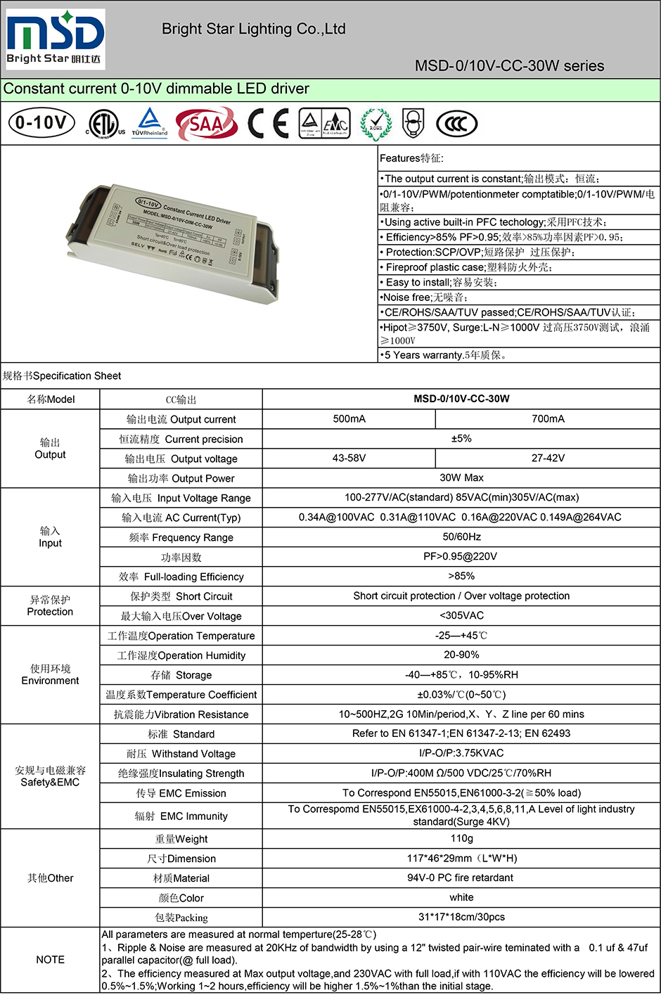 ●      CE/ROHS/SAA/TUV/ETL/CCC certs;