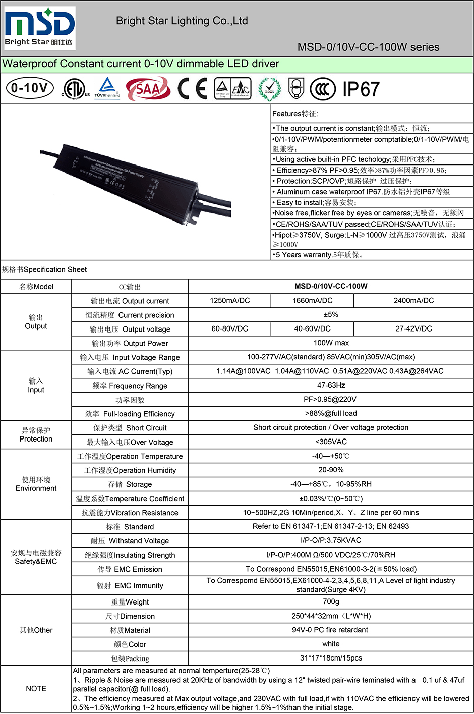 ● Output mode:Constant current● Protection:Fireproof Plastic cover or IP67 Aluminium cover;