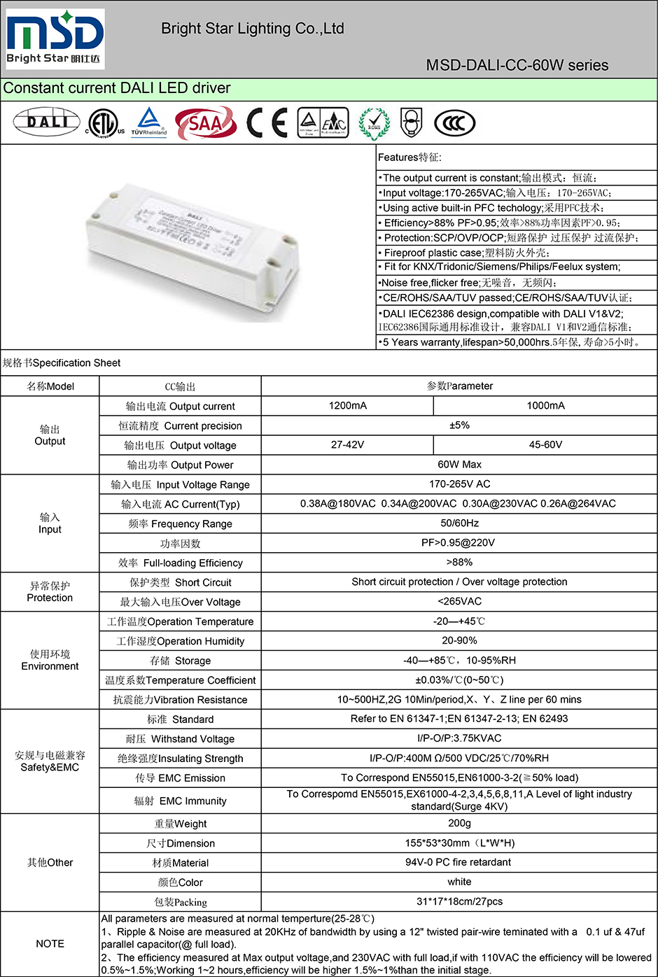 ● Comply with DALI V0 IEC60929 and DALI V1 IEC62386 standards, fully compatible with Tridonic/Siemens/Philips/Feelux system;