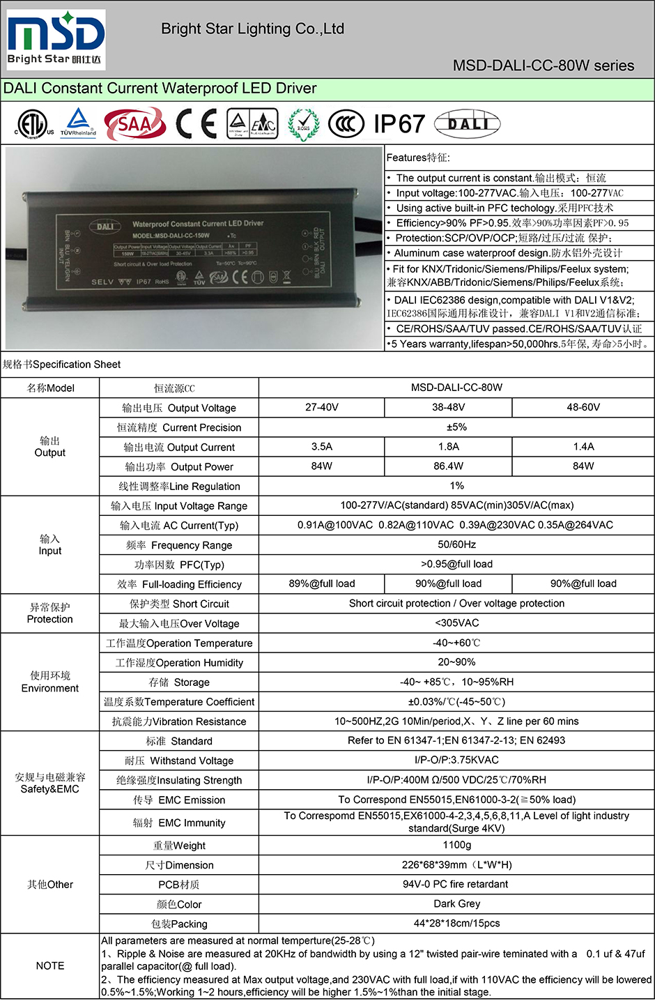● Comply with DALI V0 IEC60929 and DALI V1 IEC62386 standards, fully compatible with Tridonic/Siemens/Philips/Feelux system;
