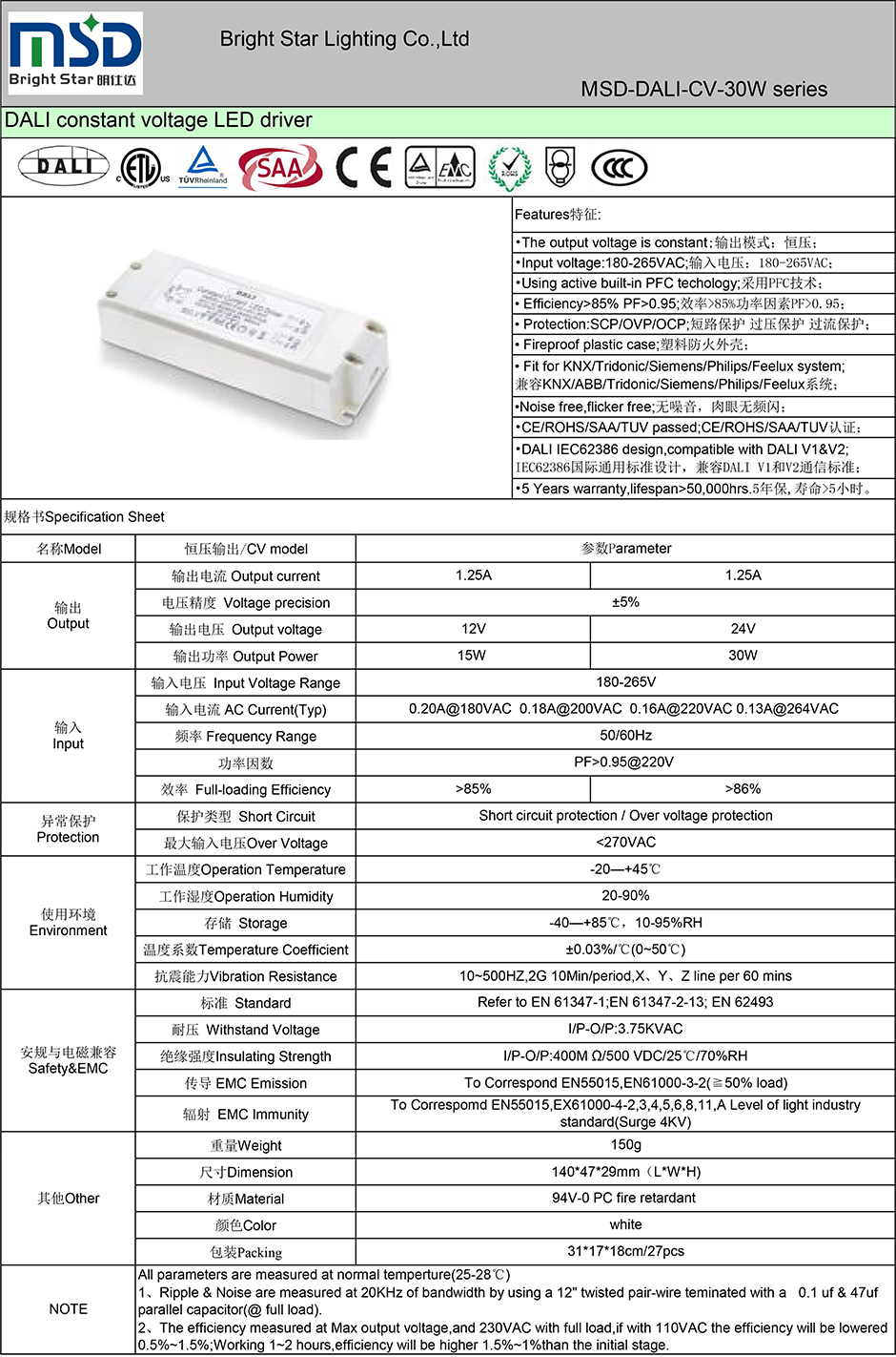 ● Comply with DALI V0 IEC60929 and DALI V1 IEC62386 standards, fully compatible with Tridonic/Siemens/Philips/Feelux system;
