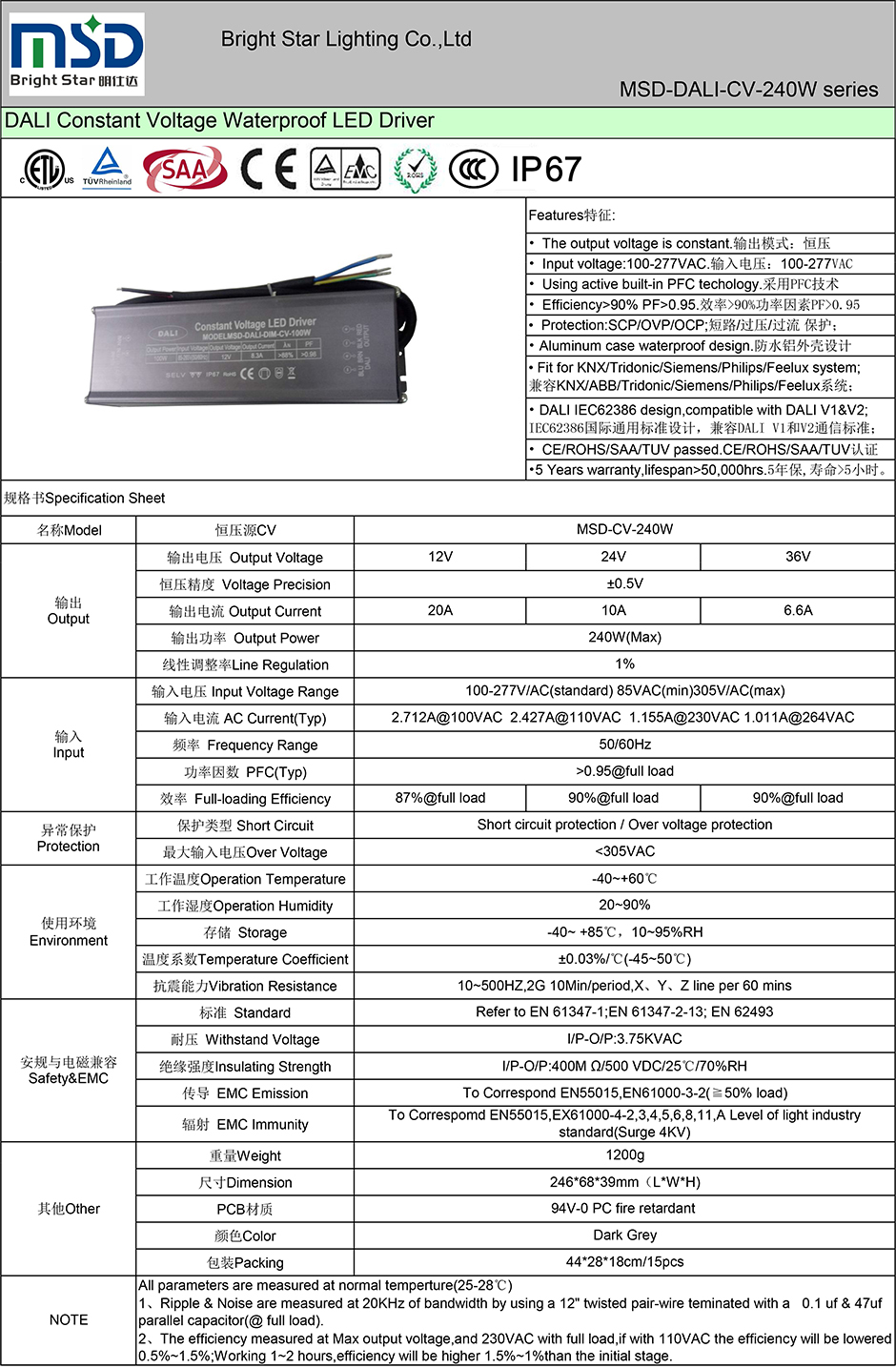 ● CE/ROHS/SAA/TUV/ETL/CCC certs;