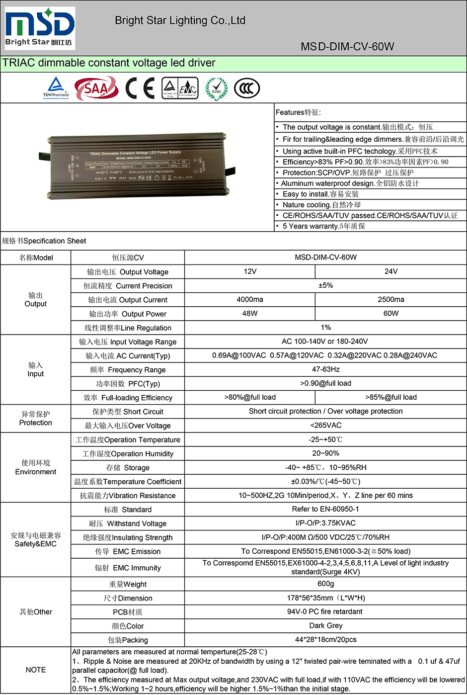 ● Output mold: Constant voltage(CV)● Fireproof plastic shell or waterproof aluminum shell IP67 grade;