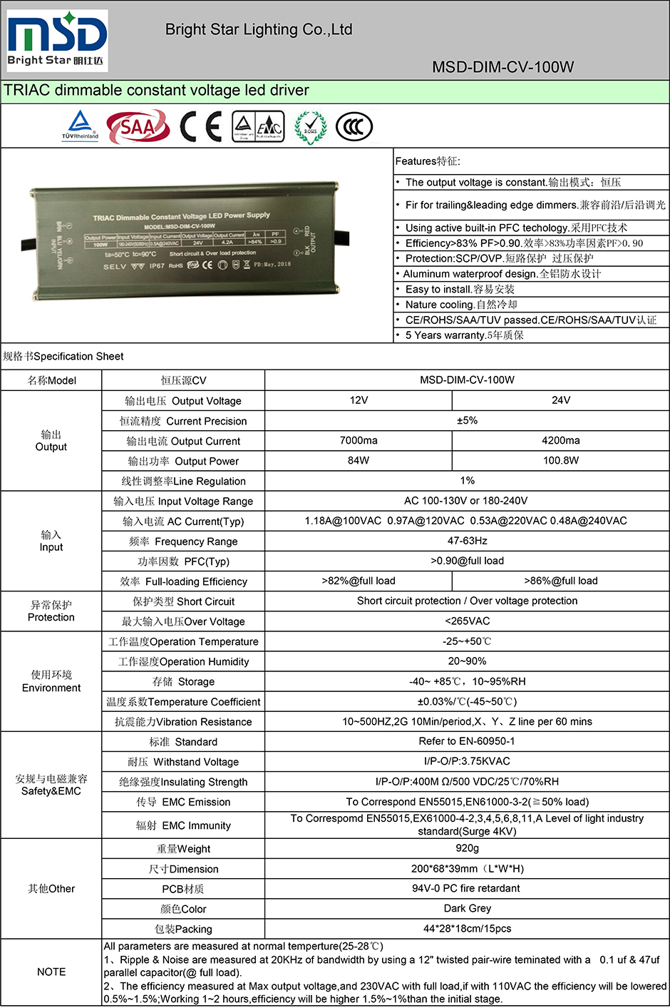 ● CE/ROHS/SAA/TUV/ETL/CCC passed