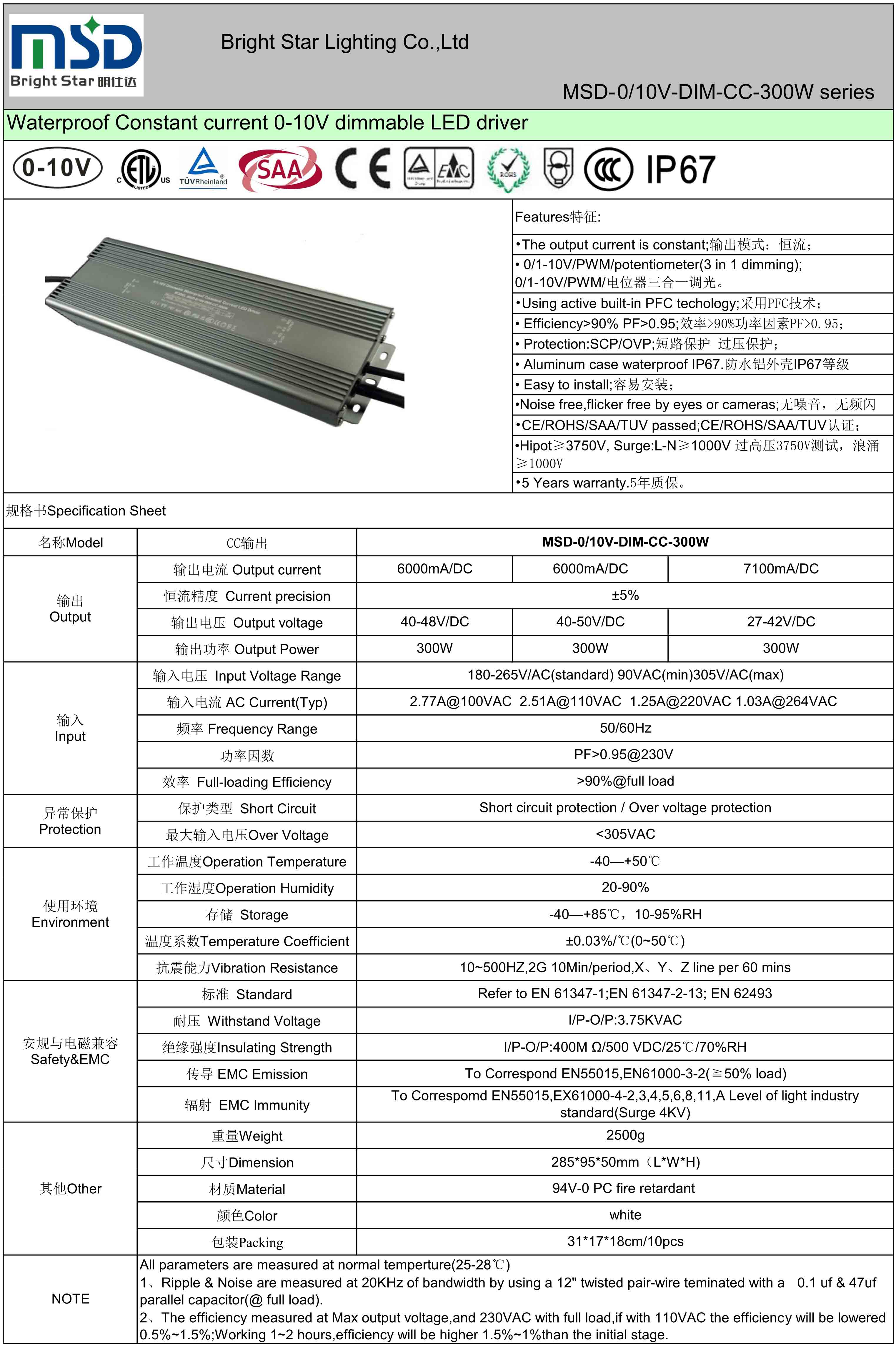 ●      CE/ROHS/SAA/TUV/ETL/CCC certs;