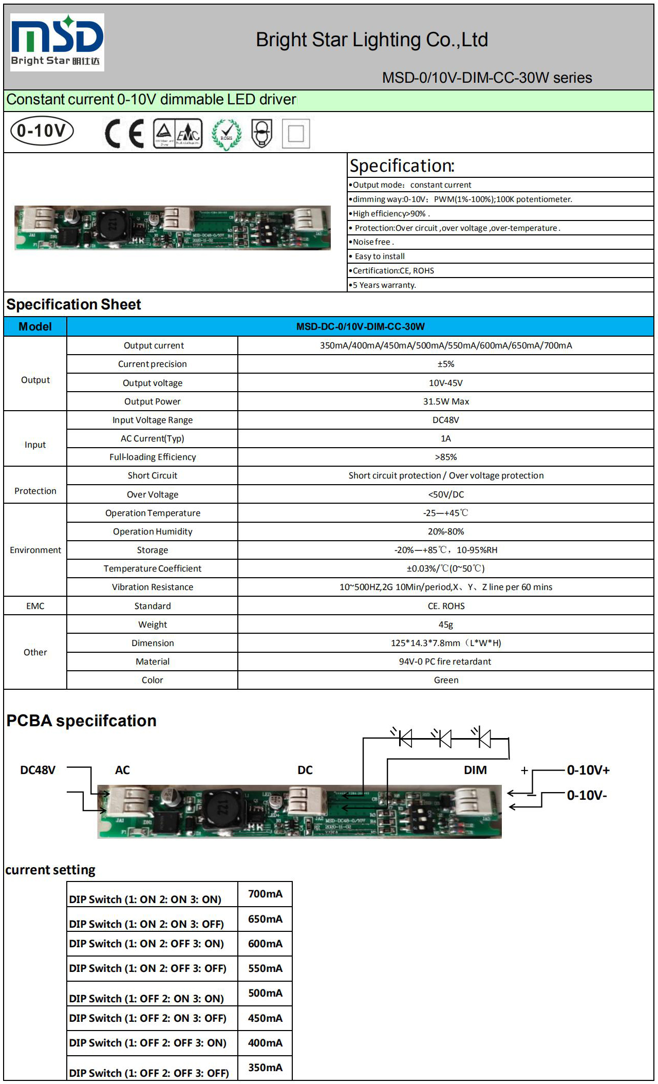0-10V CC 30W Rail light led power supply