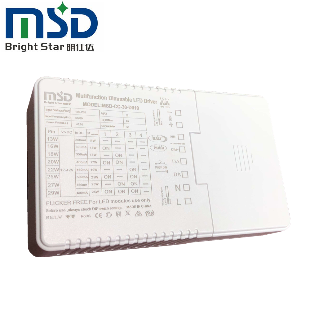 30W DALI PUSH 0-10V Integrated 3-43VDC current selectable DIP switch led driverDALI2 compatible