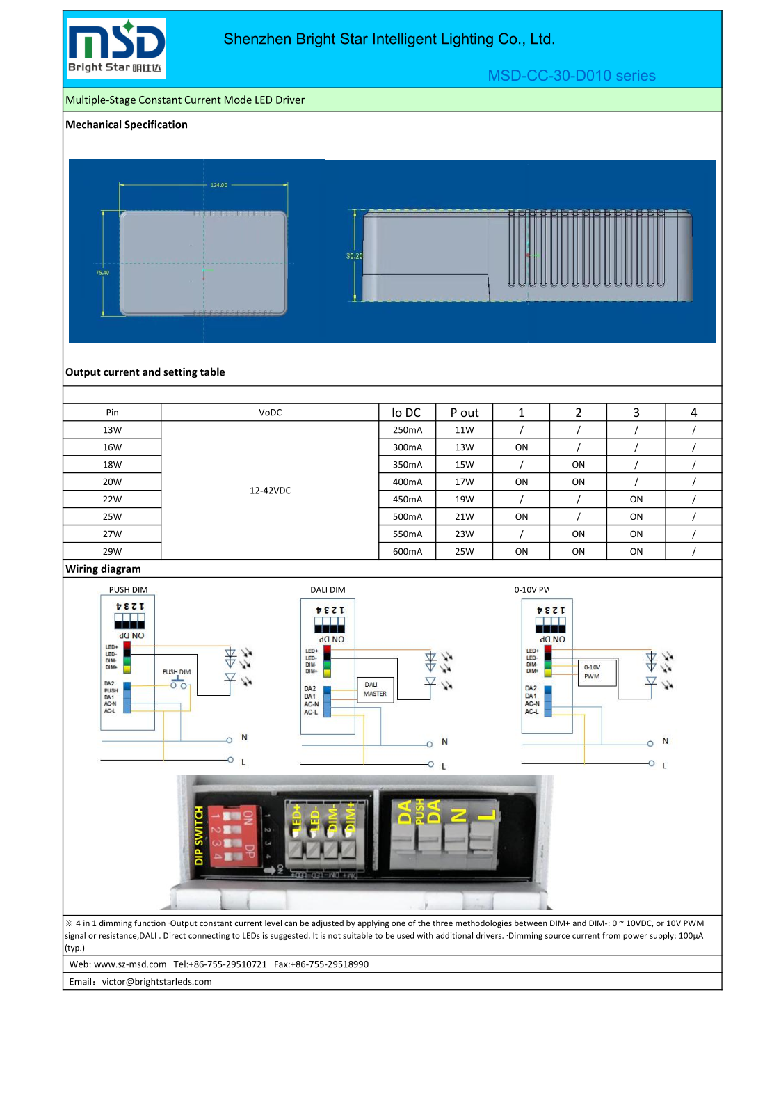 DALI PUSH 0-10V Integrated 3-43VDC current selectable DIP switch led driver
